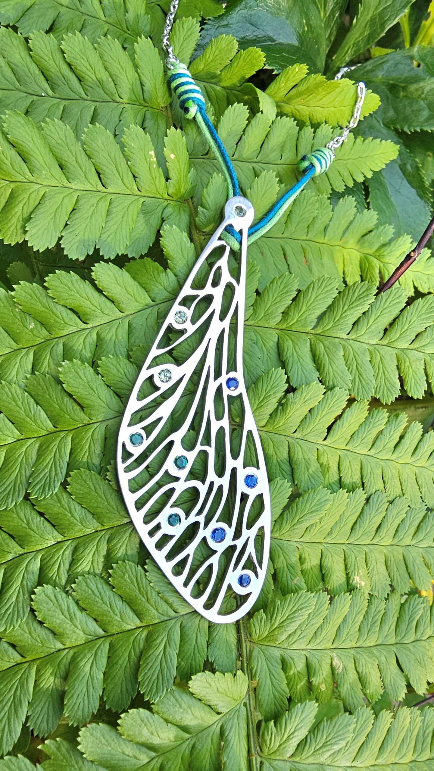 Hallmarked sterling siilver. It hangs on an 18″ trace chain.